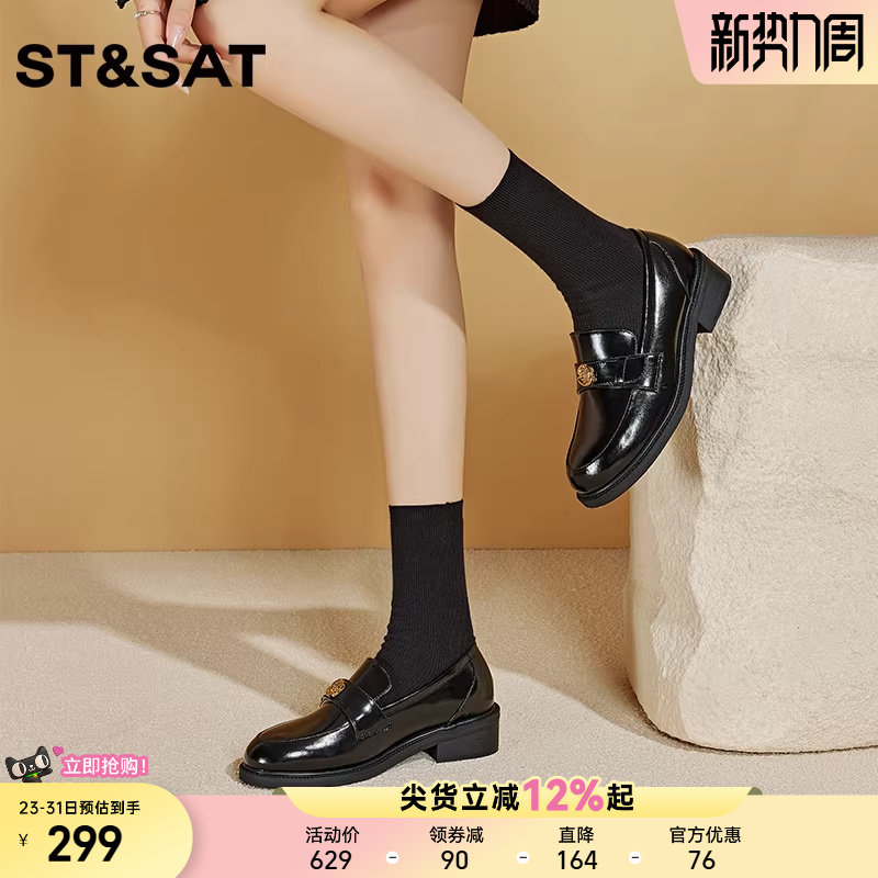 星期六山茶花乐福鞋女2025年夏季新款一脚蹬单鞋英伦百搭中跟皮鞋