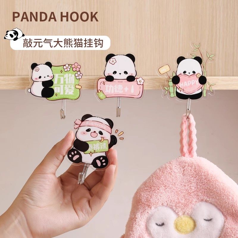可爱熊猫挂钩强力粘胶粘钩无痕免打孔墙上门后厨房卫生间宿舍钩子