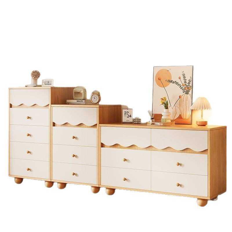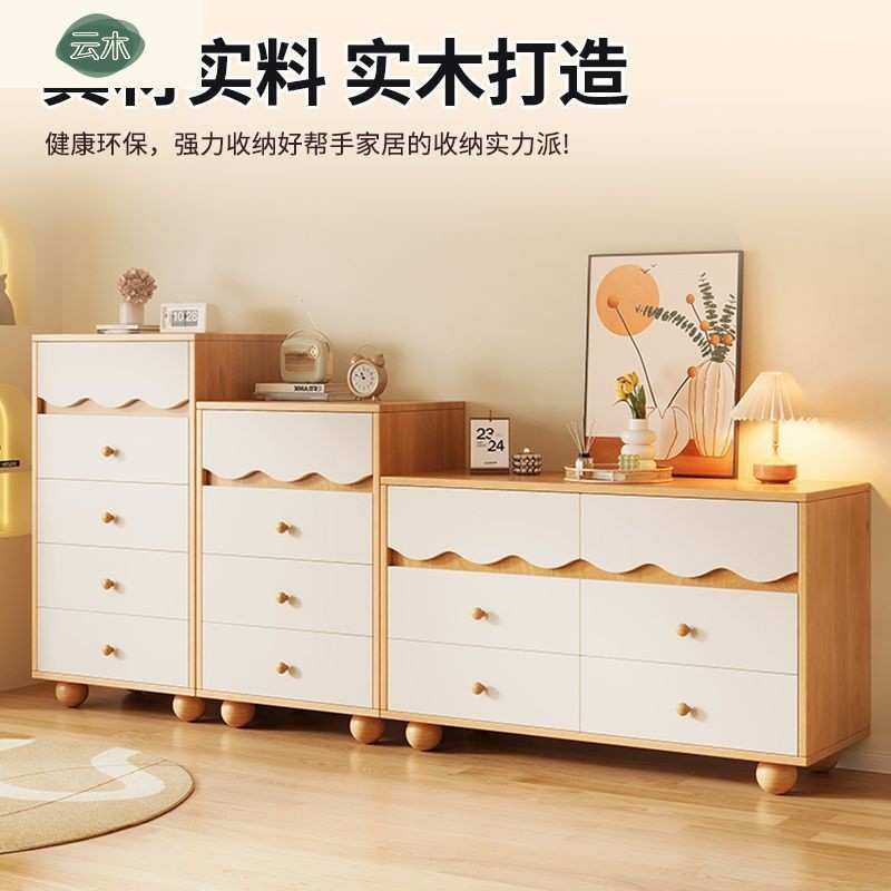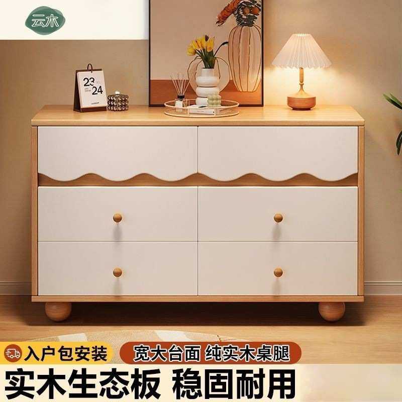 实木餐边柜奶油风波浪纹斗柜卧室床边置物柜靠墙储物柜客厅边柜