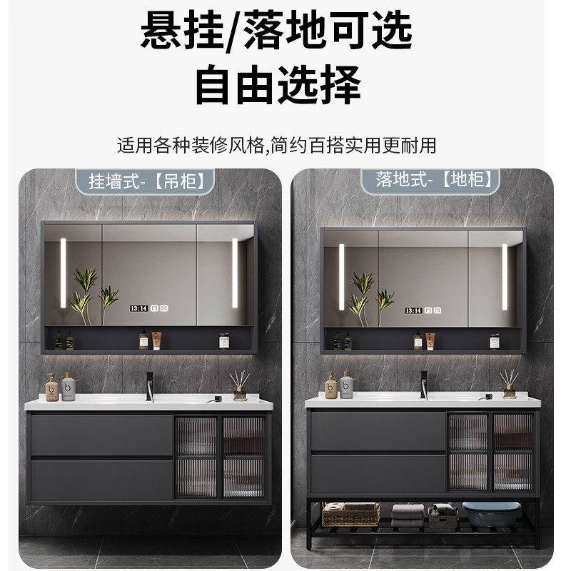 太空铝蜂窝浴室柜组合陶瓷一体盆侧边柜收纳洗漱台卫生间洗手盆柜