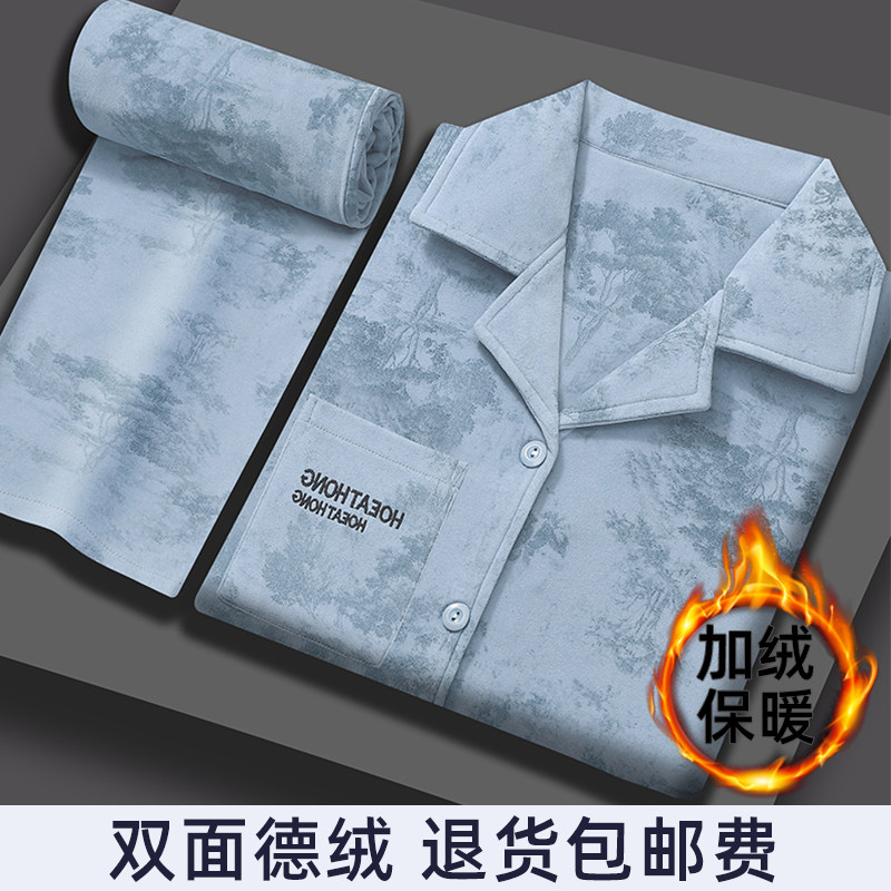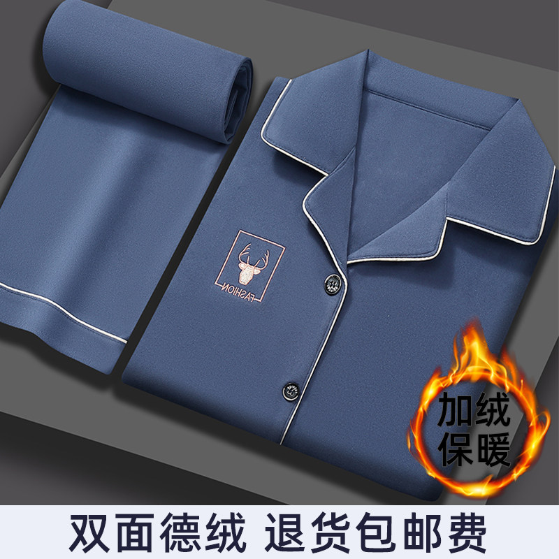 2025新款睡衣男秋冬季保暖德绒长袖家居服冬天薄绒大码可外穿套装