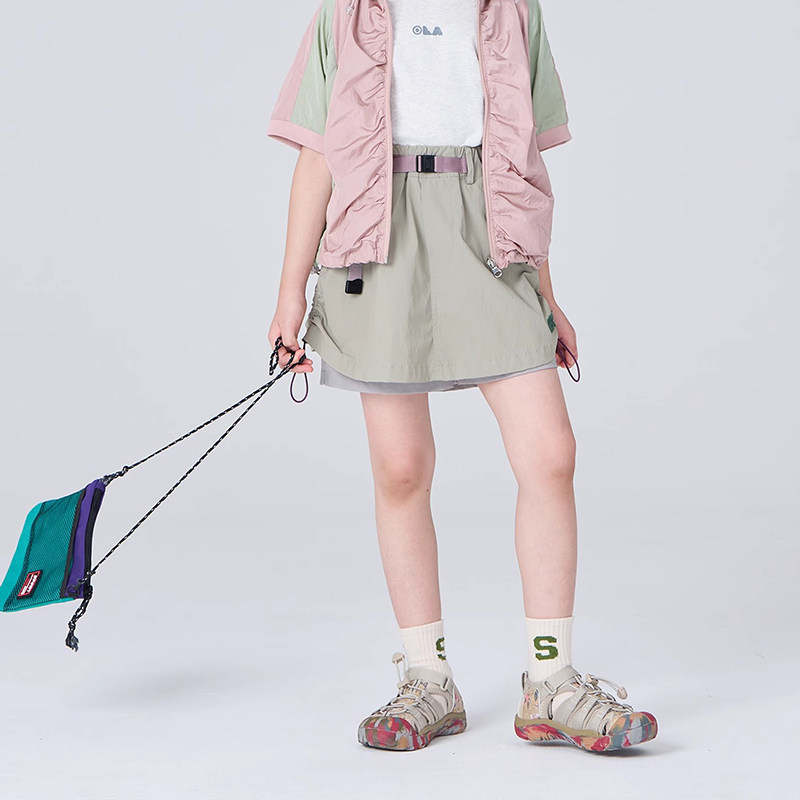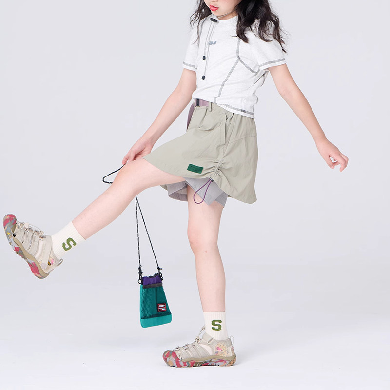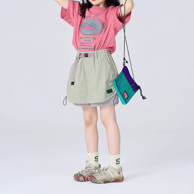 女孩半身裙夏季2025亲子假两件户外百搭工装双层短裙裤裙防走光