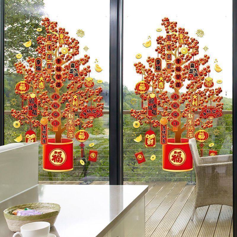 2026新年发财树装饰贴画马年春节年画静电贴玻璃窗花贴纸橱窗贴画