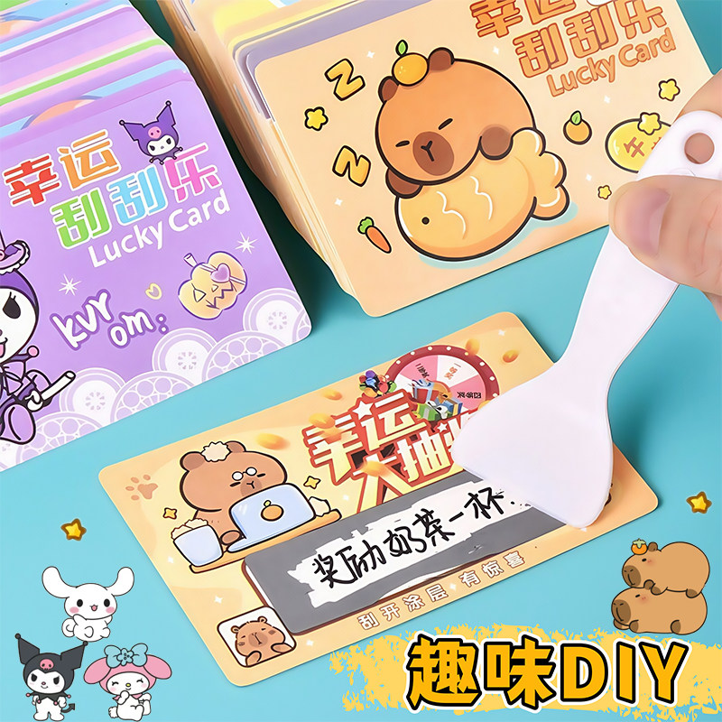 卡皮巴拉幸运刮刮卡刮刮乐小学生奖励抽奖卡可手写diy自制涂层贴