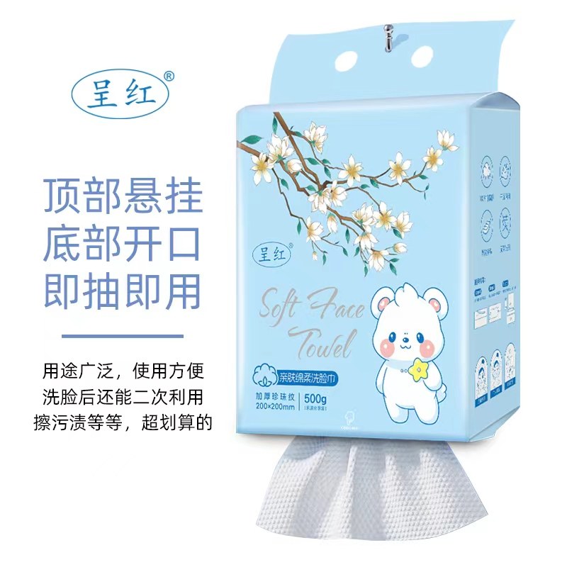 呈红一次性洗脸巾悬挂式500g大包加厚擦洗脸洁面巾母婴官方正品