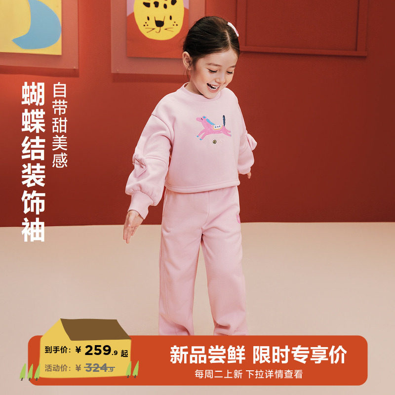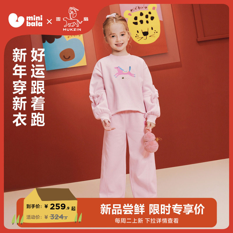 【密扇联名】迷你巴拉巴拉女童加绒长袖套装儿童长袖长裤拜年甜美