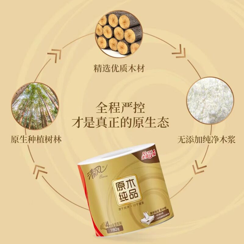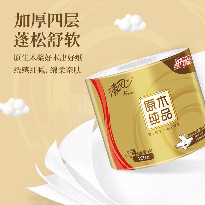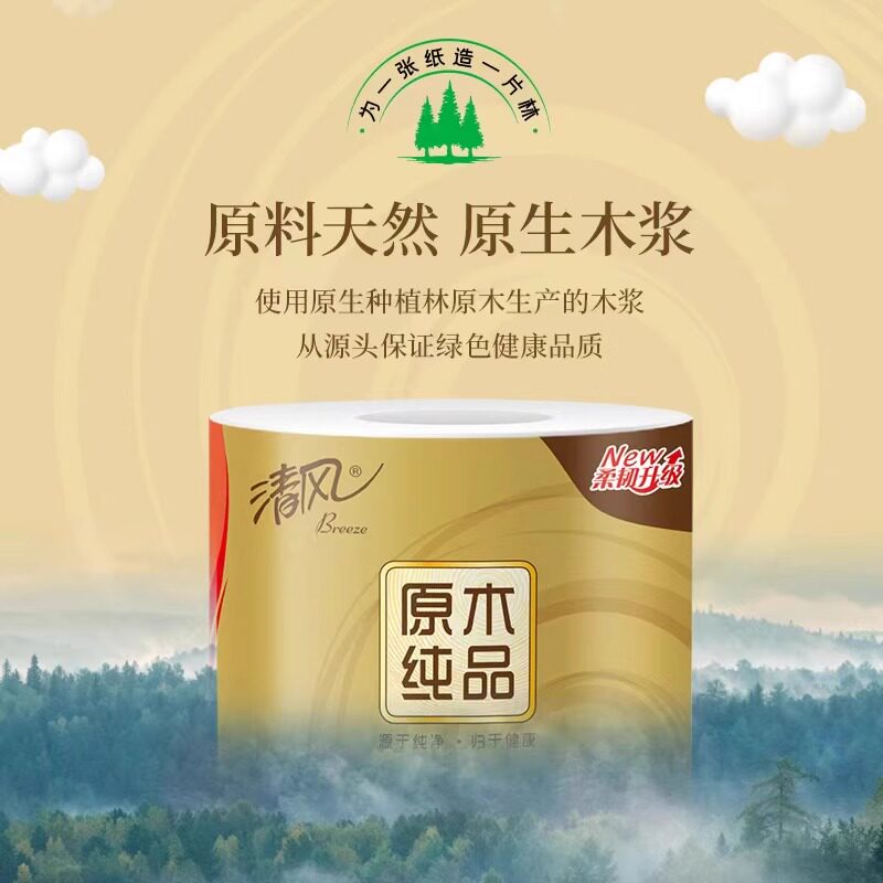 清风卷纸卫生纸厕所有芯家用实惠装整箱原木纯品纸巾厕纸手纸原生
