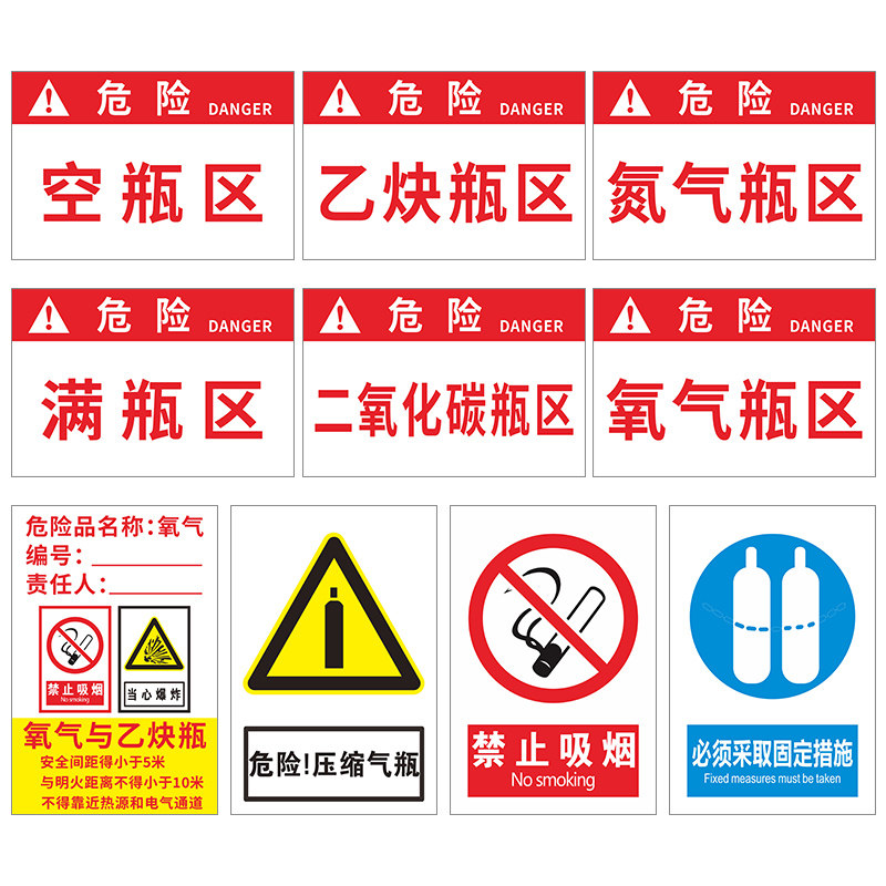 气瓶存放危险品警示牌标识牌空瓶区满瓶区氧气瓶乙炔瓶区氮气瓶区二氧化碳瓶区氧气瓶区提示牌告示牌标牌定制