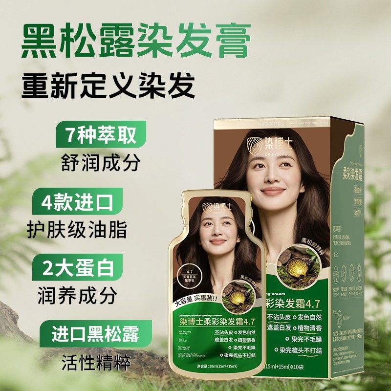【柔彩染发霜】染博士黑松露染发膏家用遮盖白发栗棕黑茶色染发剂