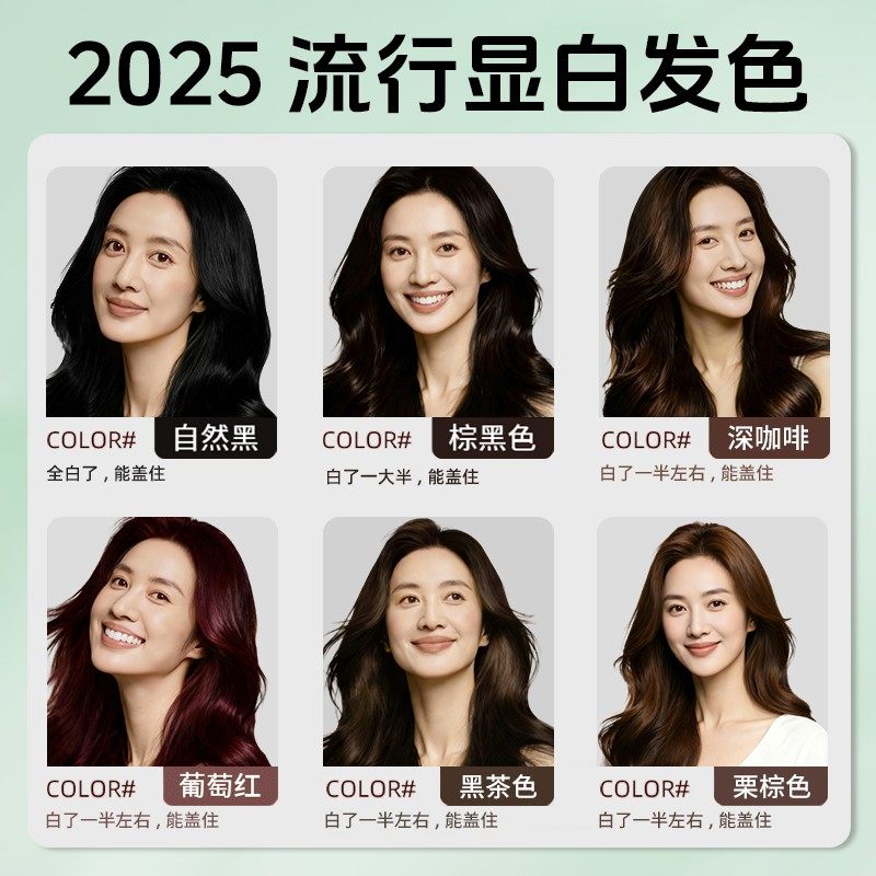 韩金靓正品染发剂黑茶色棕植物泡泡刺激无纯自己在家染发膏盖白女