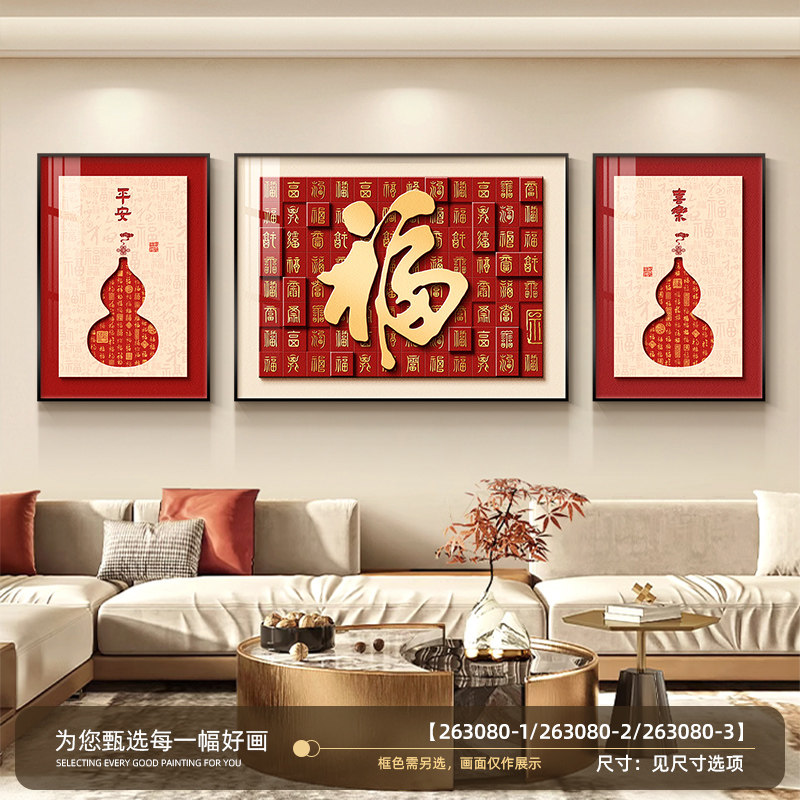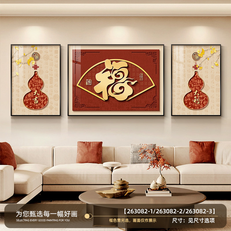 新中式客厅装饰画三联画寓意好葫芦沙发背景墙挂画福字墙画大气