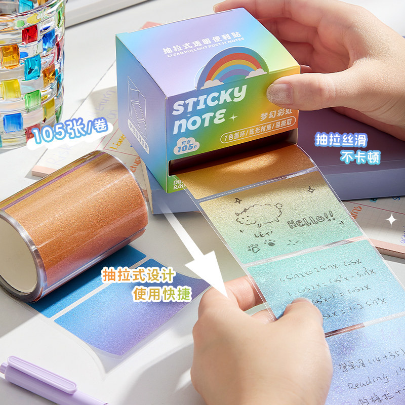 透明便利贴抽拉式珠光高颜值ins初中生专用小条高粘性爆闪透明贴纸记事贴扩张任意贴小学生便签纸不遮挡字迹