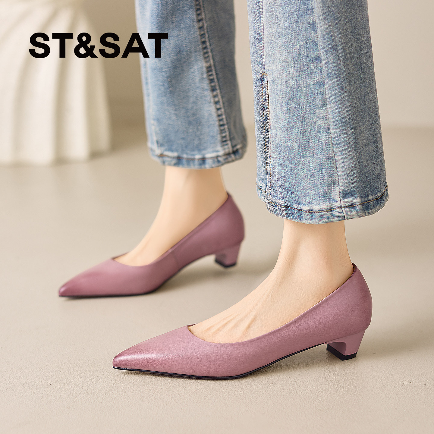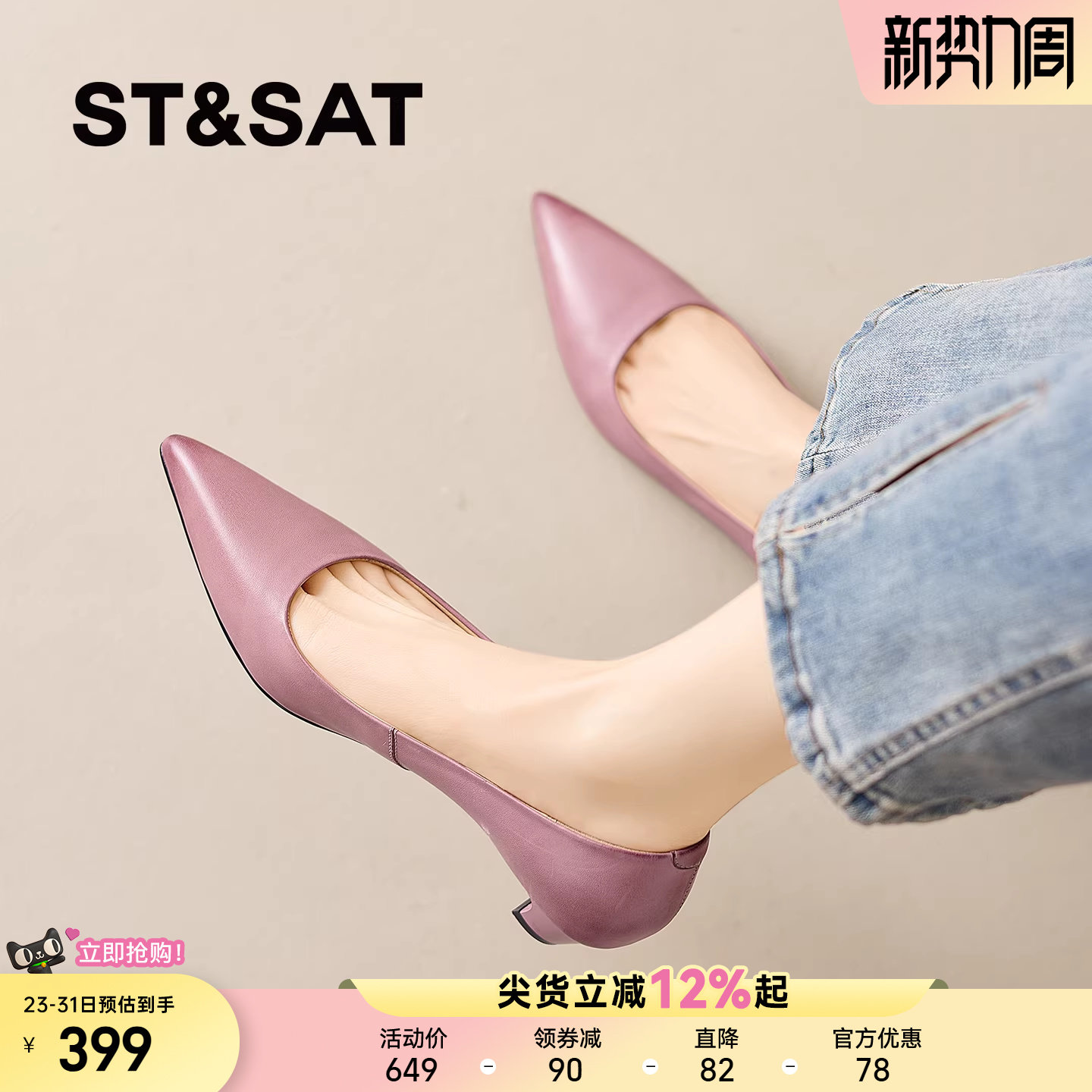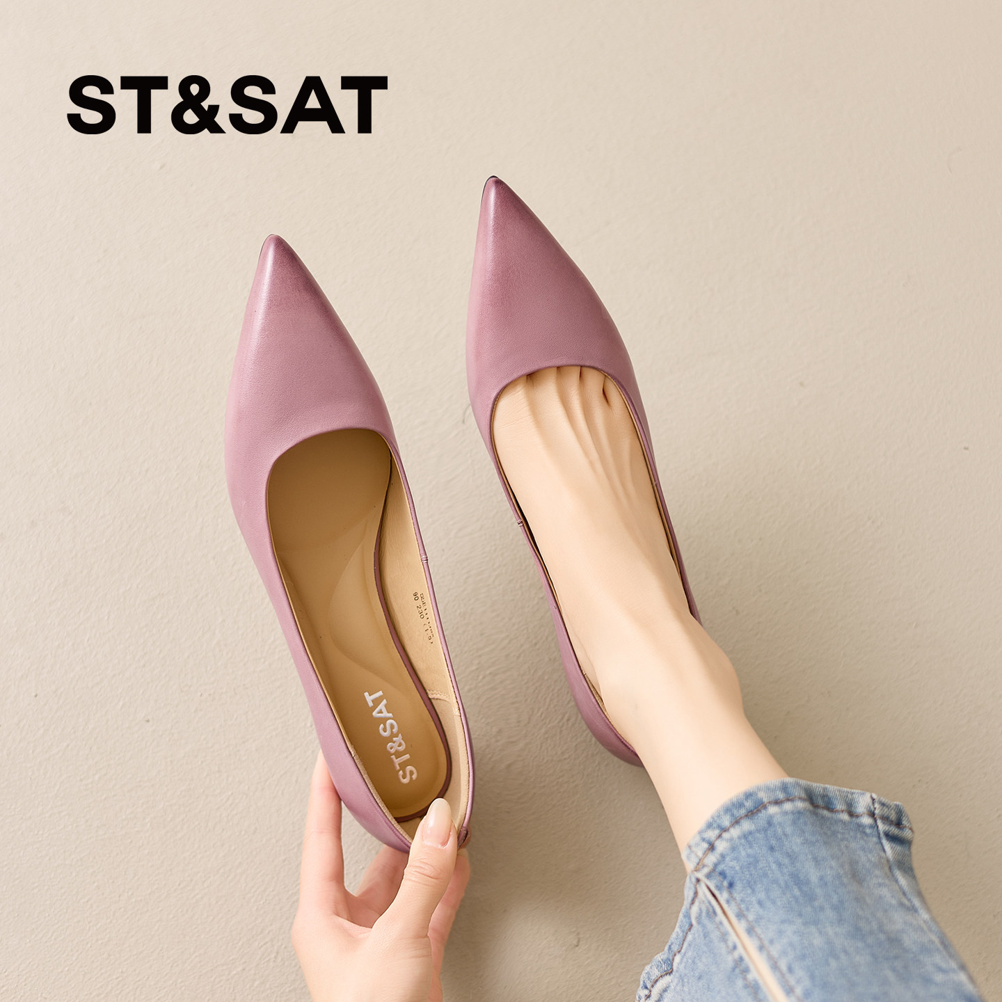 星期六尖头高跟鞋女2026新款巨好看紫色气质百搭舒适低跟软底单鞋