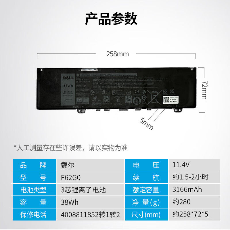 戴尔原装 笔记本电池 F62G0 内置锂离子电池 Vostro 成就 5370