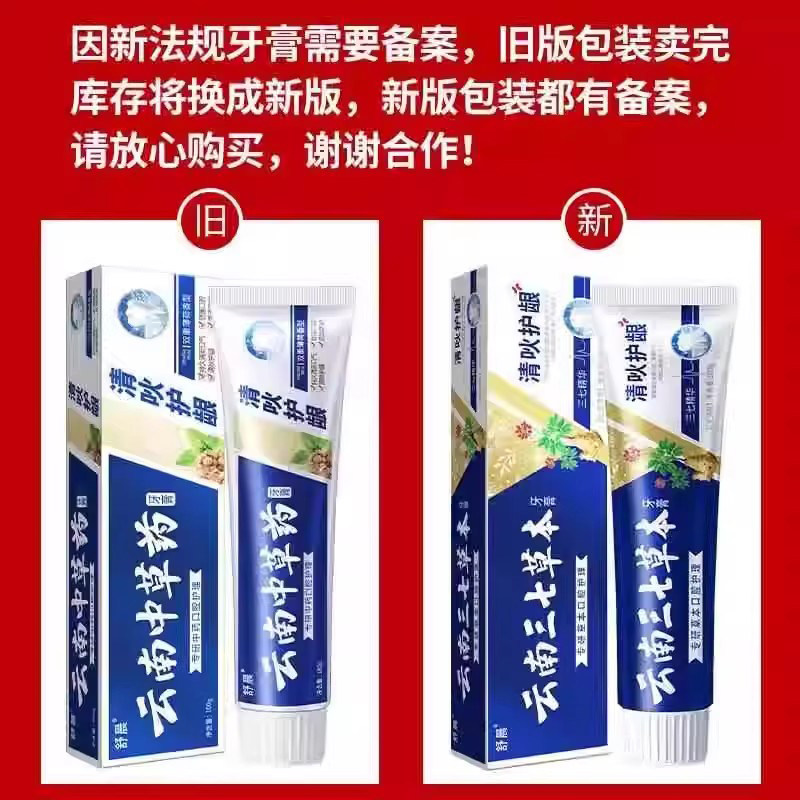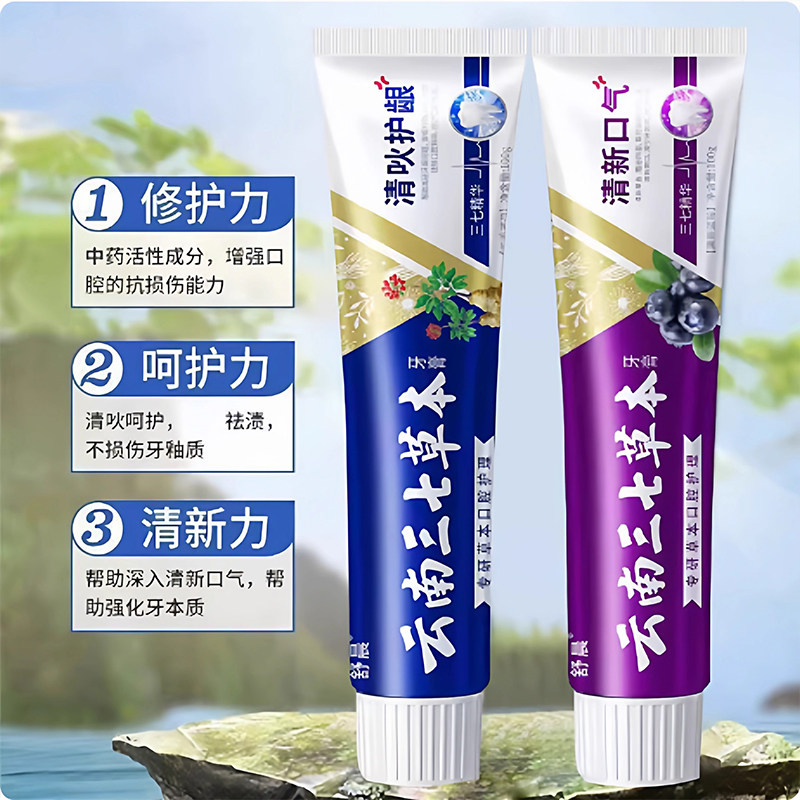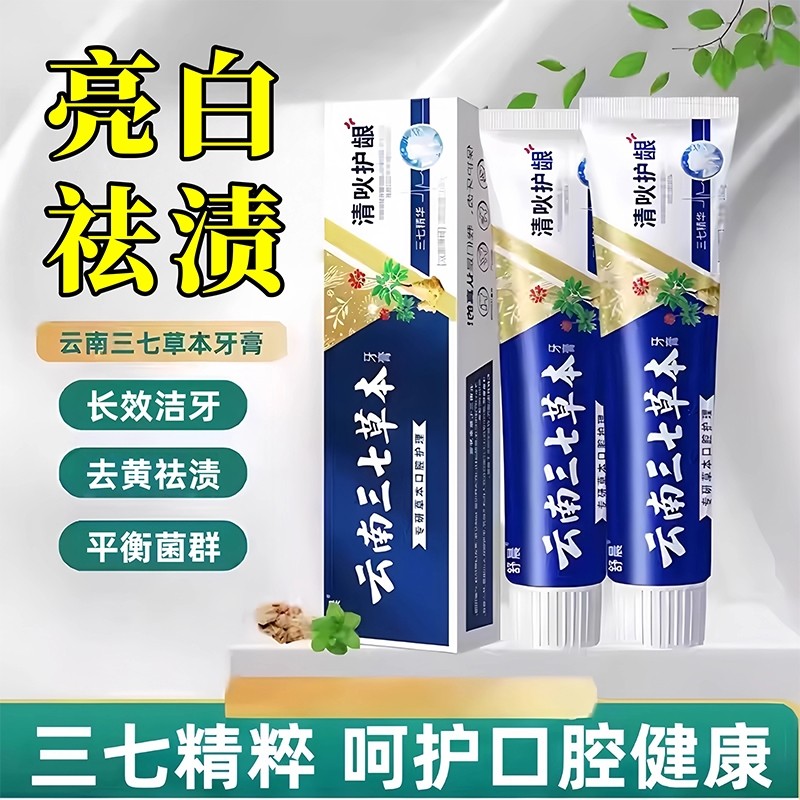 云南三七牙膏清火护龈美白祛渍去口臭亮白清新口气去黄去牙渍护齿