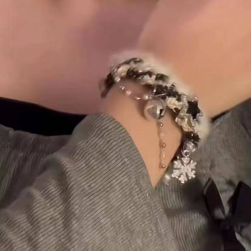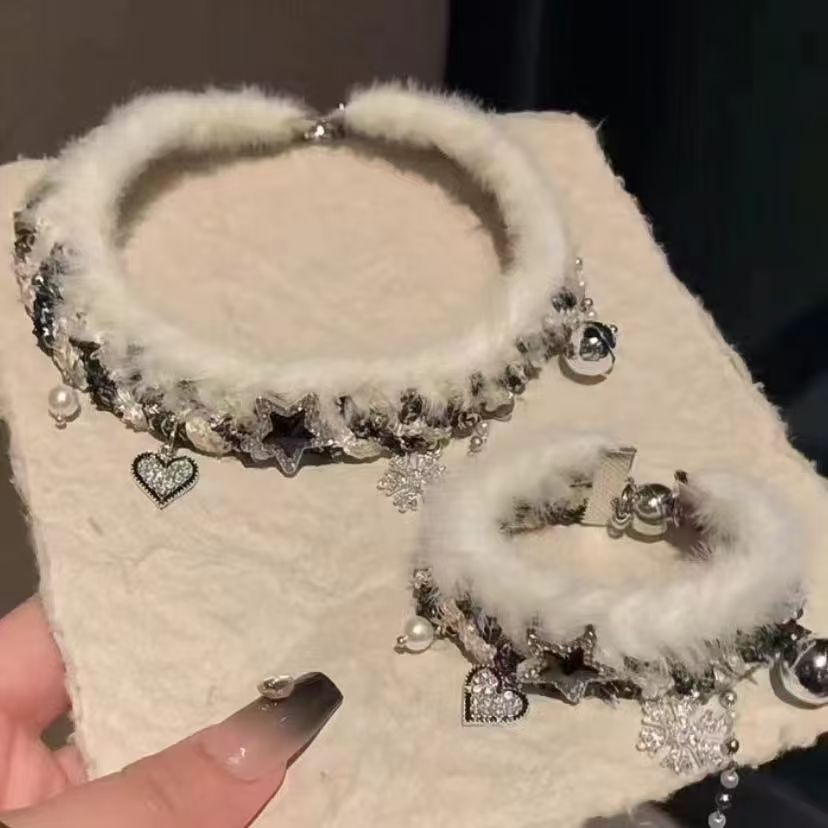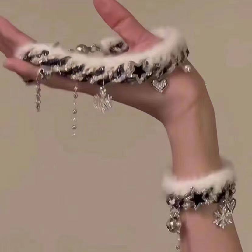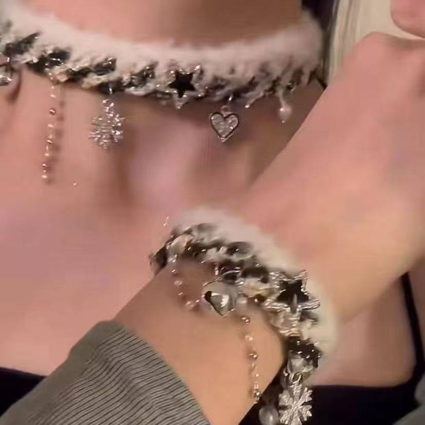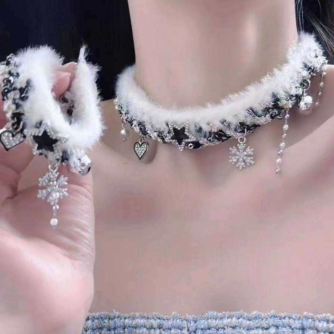2025新款毛绒编织雪花流苏星星锁骨链秋冬百搭撞色拼接手链女项链