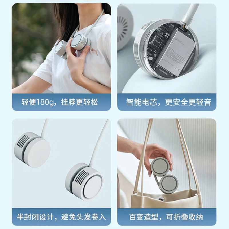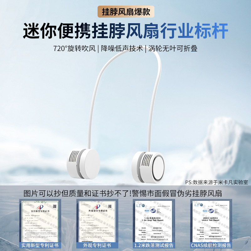 米卡凡挂脖风扇挂脖空调可折叠迷你随身风扇usb充电便携式风扇挂脖子上超长续航低音小型户外大风力降温神器