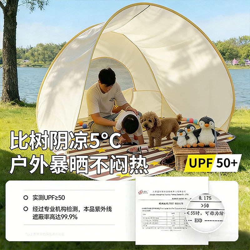 沙滩垫室内帐篷户外露营免搭帐篷室内儿童野餐垫自动亲子速开帐篷