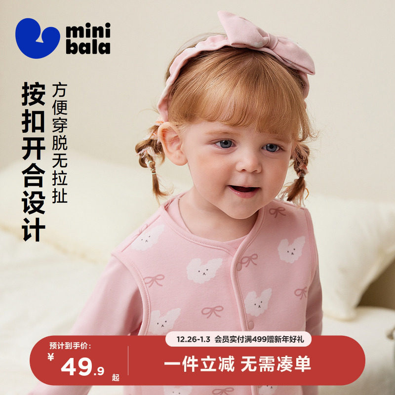迷你巴拉儿童保暖背心男女童宝宝柔软亲肤内里抓绒印花家居马甲秋