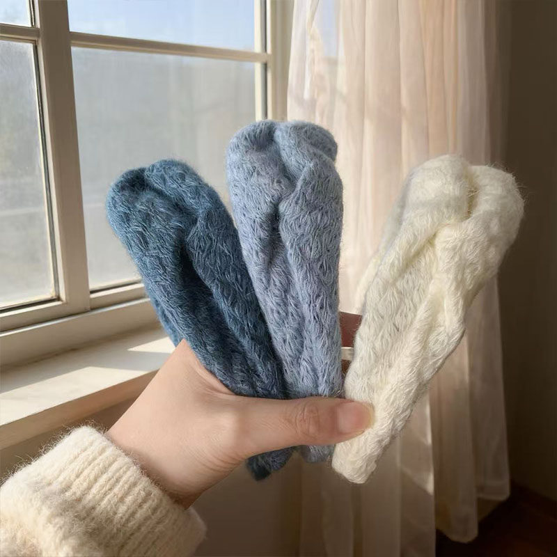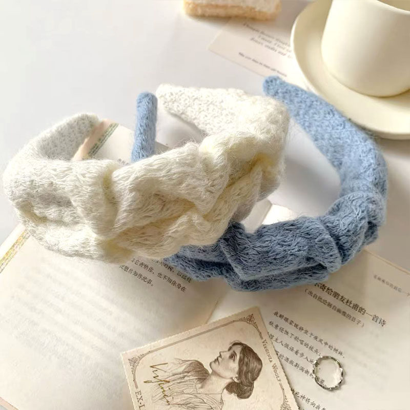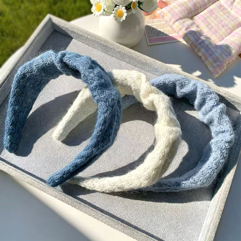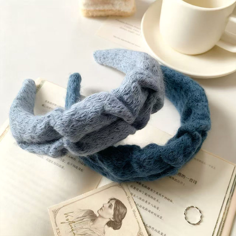 韩系克莱因蓝毛绒宽边发箍女秋冬日常外戴发捆高颅顶百搭洗脸头箍