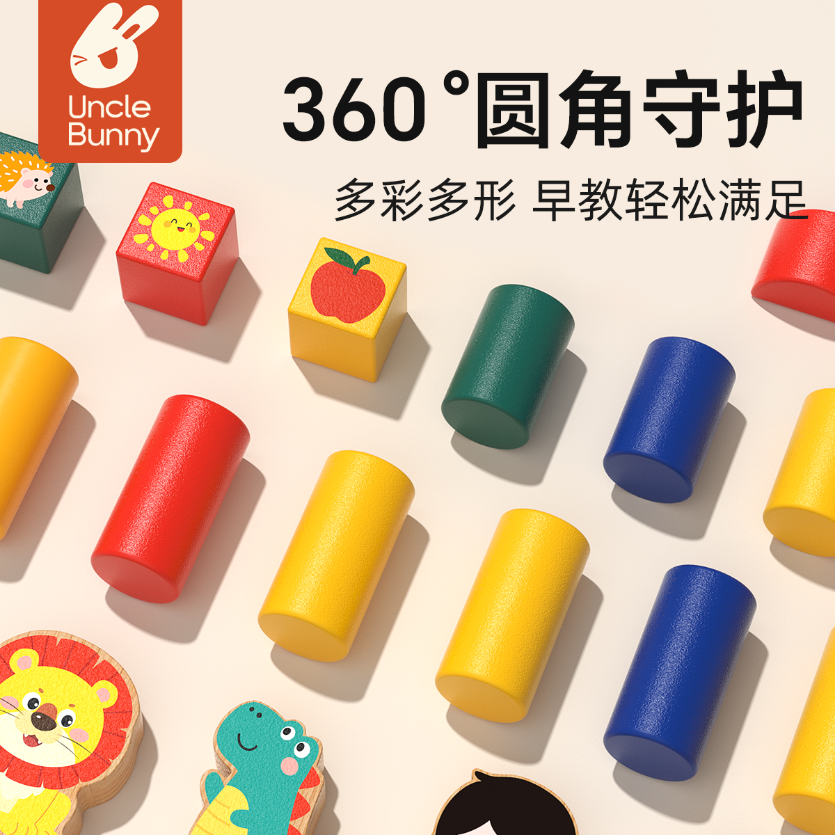 婴儿童积木0到3岁6木头大颗粒拼装益智玩具拼图1一2男宝宝女孩桌5