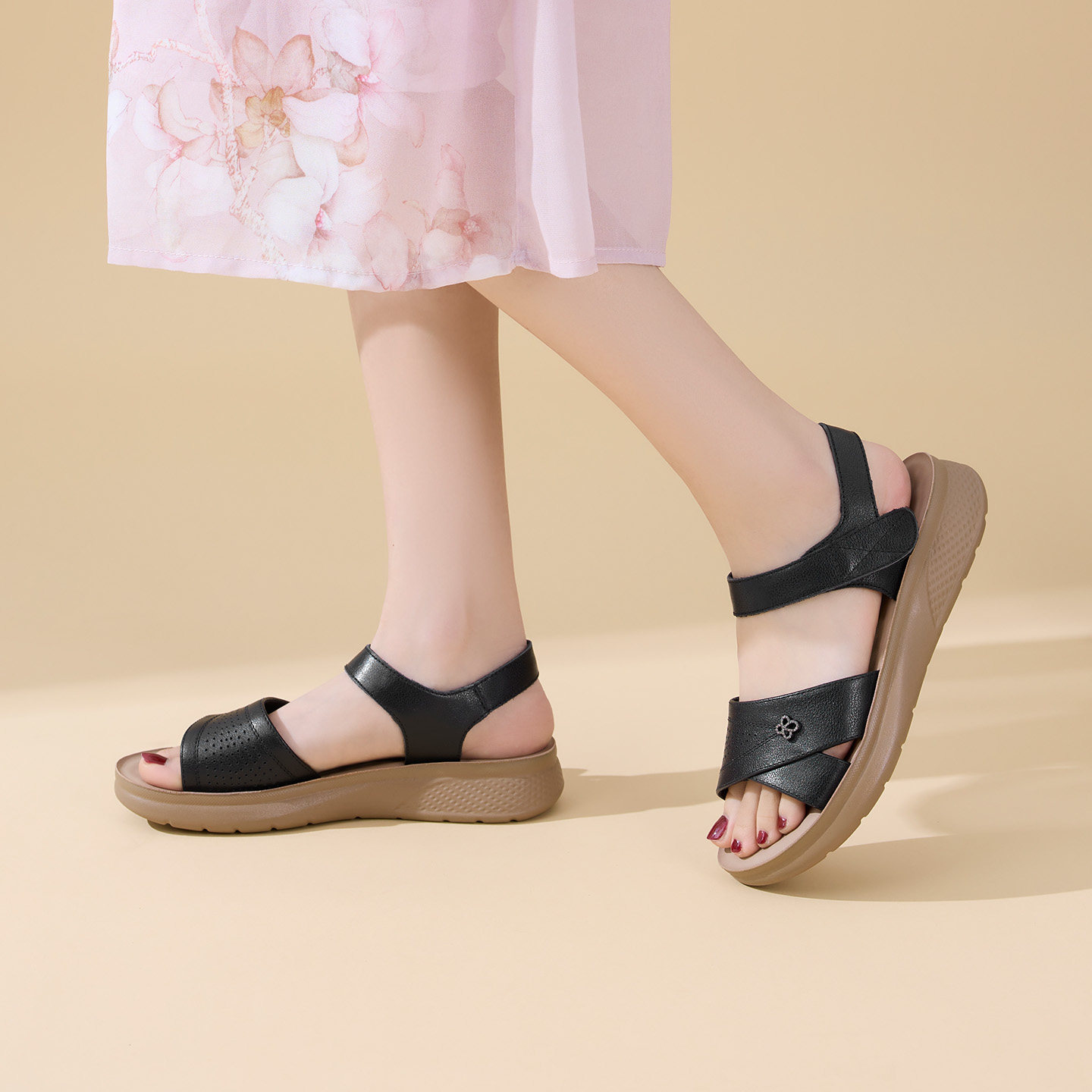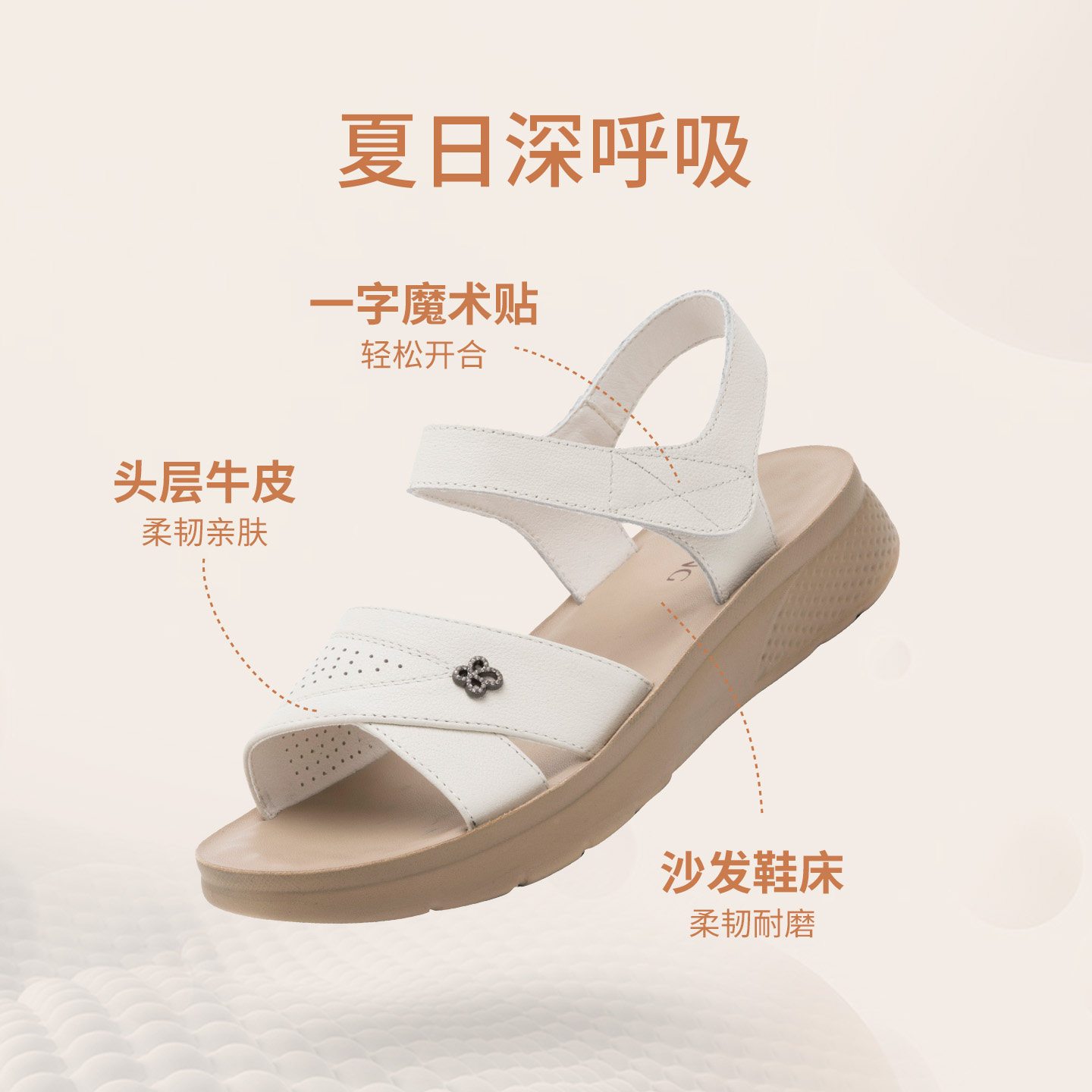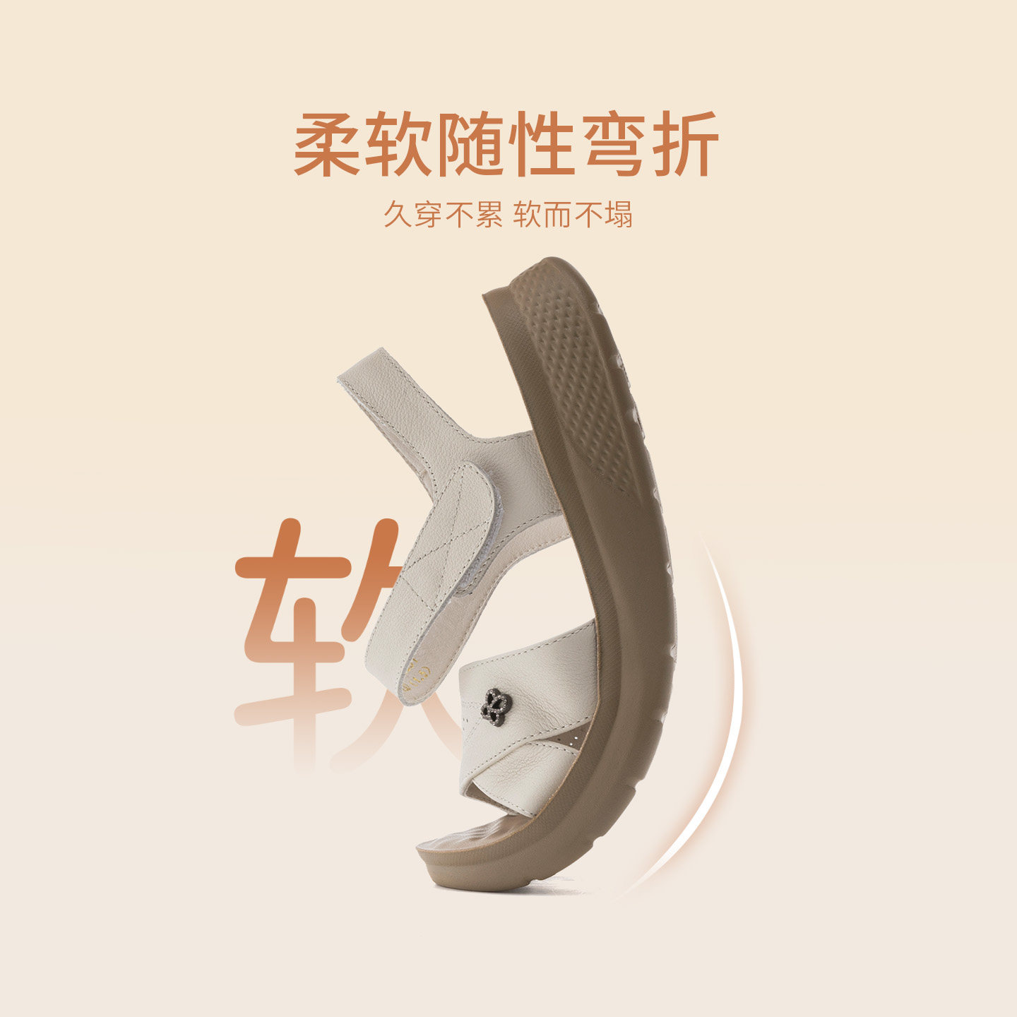 奥康 女鞋2026夏季新款真皮软底舒适休闲简约妈妈外穿轻便凉鞋