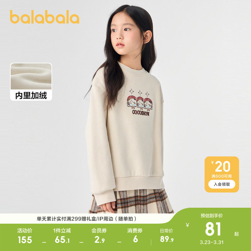 【无雪棉花娃娃IP】巴拉巴拉童装儿童加绒长袖卫衣女童秋冬装百搭