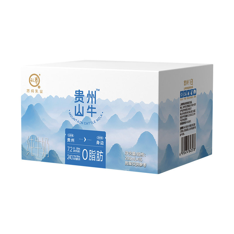 认养贵州山牛纯牛奶200ml*15盒脱脂牛奶3.6g0脂肪牛奶学生奶高钙