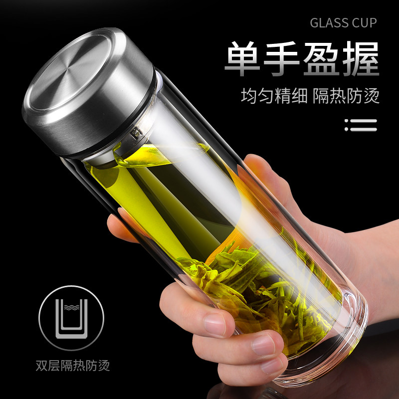 双层玻璃杯女学生喝水杯子家用男茶水分离泡茶杯个人专用单层防爆