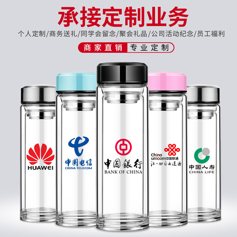 希诺双层玻璃杯男士高档便携抗菌礼盒车载水杯隔热杯子家用女茶杯