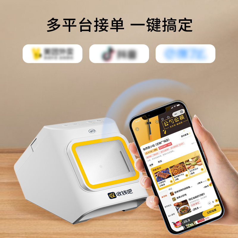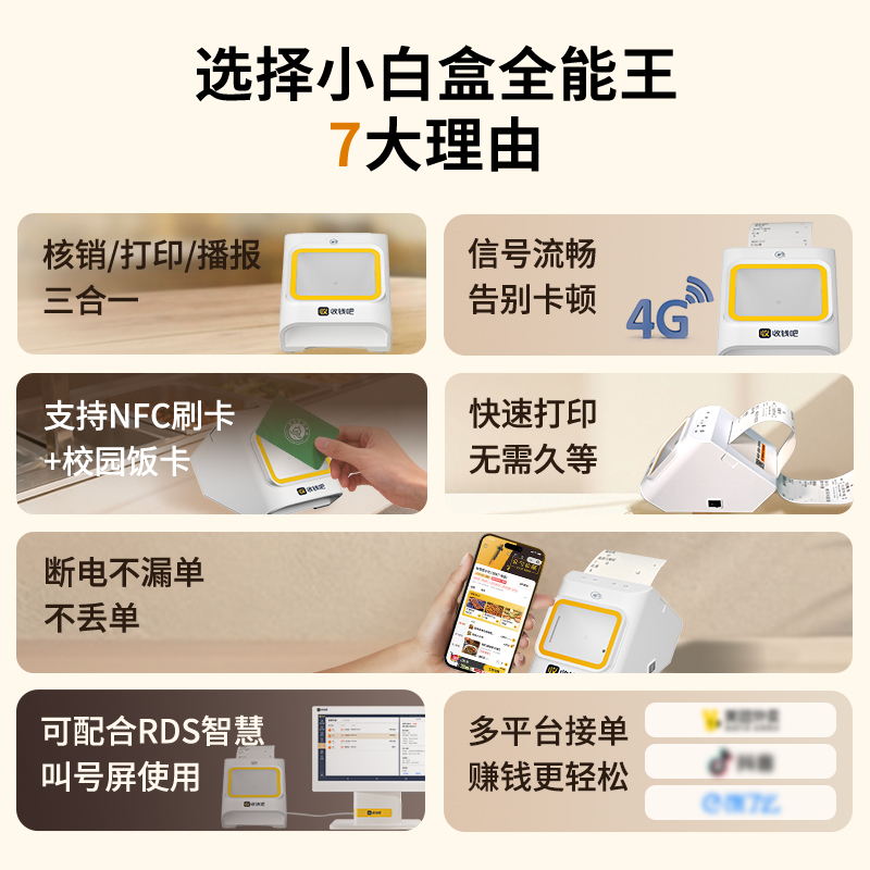 收钱吧4G扫码核销小票打印播报音箱美团饿了么京东抖音外卖打印机自动接单出餐宝微信支付宝盒子语音提示器