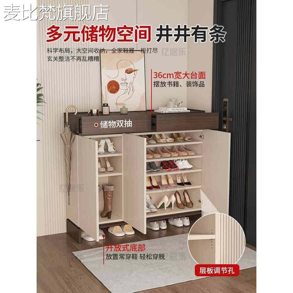 麦比梵实木鞋柜家用门口一体靠墙入户玄关柜简约现代客厅多层储物柜子床笠拉车