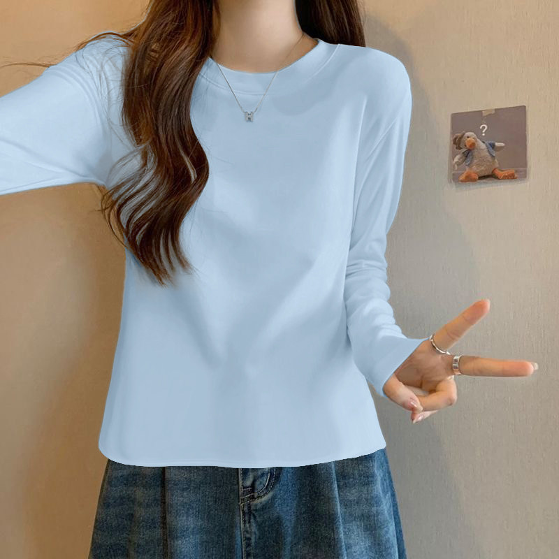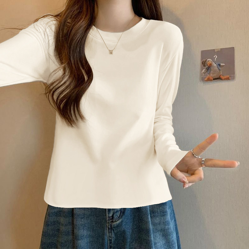 三福长袖上衣女2025新款秋冬季圆领内搭打底衫修身白色t恤女装
