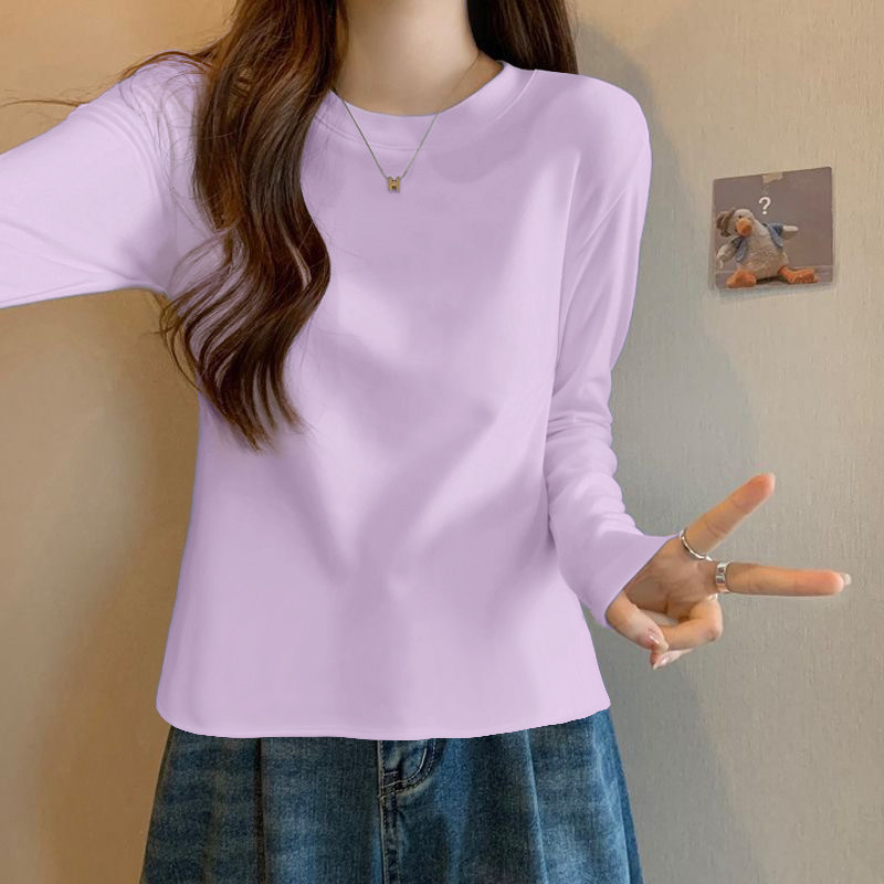 春秋莫代尔长袖打底衫女圆领休闲大码纯色上衣宽松T恤衫薄款秋衣