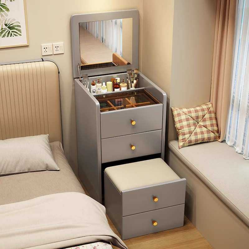家用化妆桌一体实木梳妆台收纳柜卧室多功能小型床边翻盖斗柜镜子