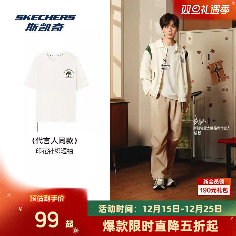 成毅同款丨斯凯奇2025年新品T恤男士舒适时尚百搭针织短袖衫