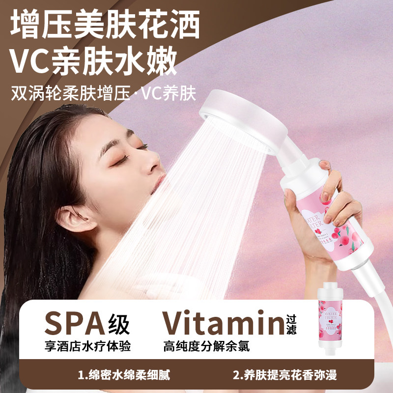 香氛淋浴增压过滤花洒喷头双芯净水抑菌除氯器浴室洗澡沐浴莲蓬头