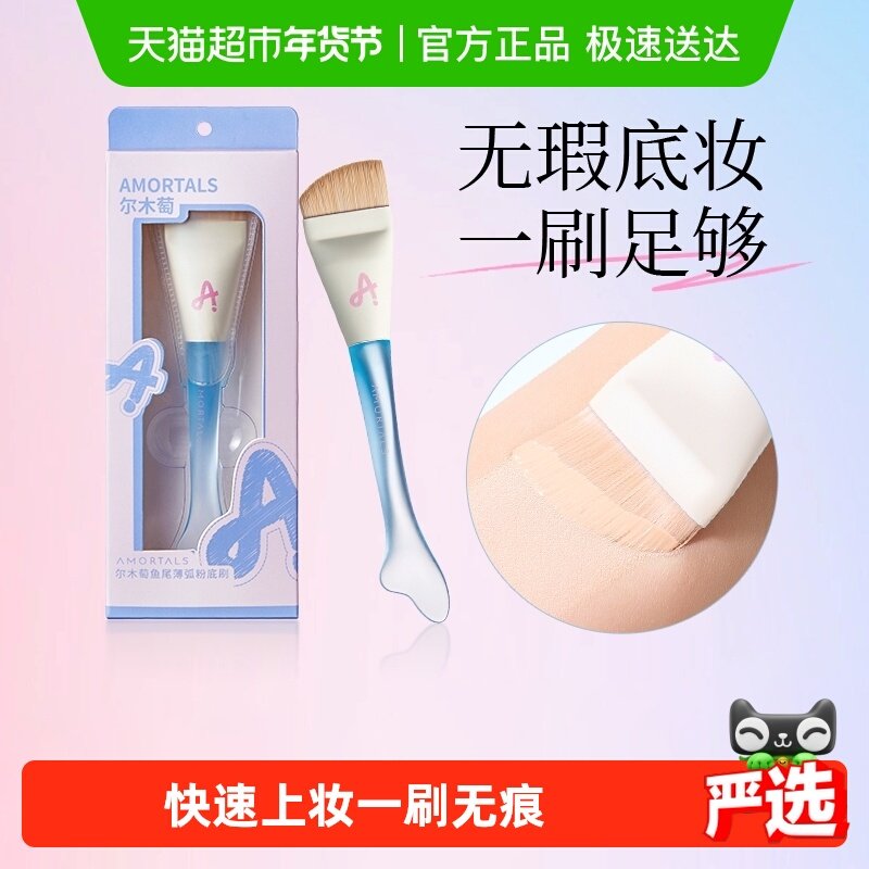 尔木萄鱼尾薄弧一字型粉底刷扁平头不吃粉刀锋无痕粉底液化妆刷子