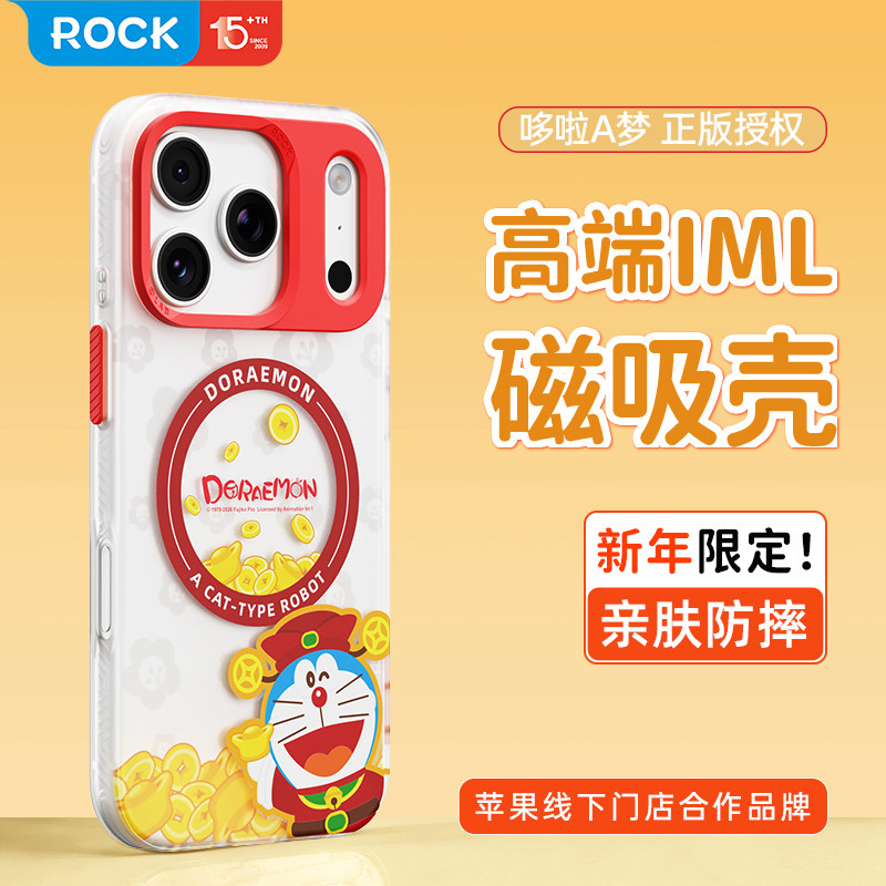 【哆啦A梦正版】ROCK适用新年苹果17手机壳新款iphone17promax马年本命年16磁吸高级感17pro超好看情侣外壳套
