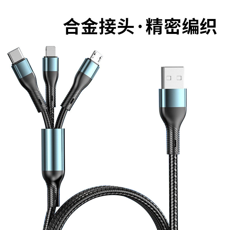 数据线超级快充三合一适用于苹果华为安卓typec接口一拖三充电线