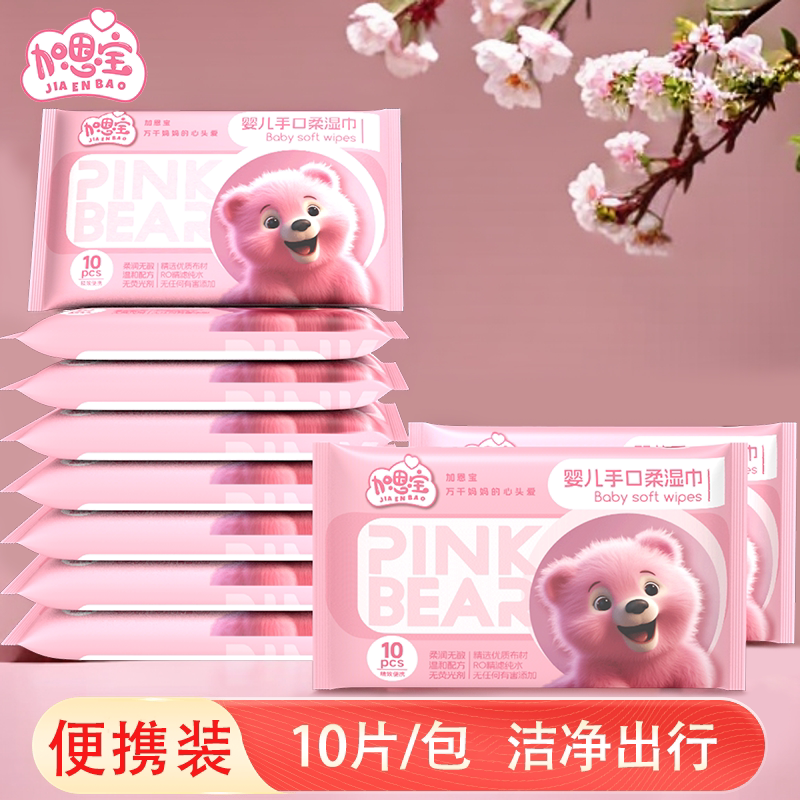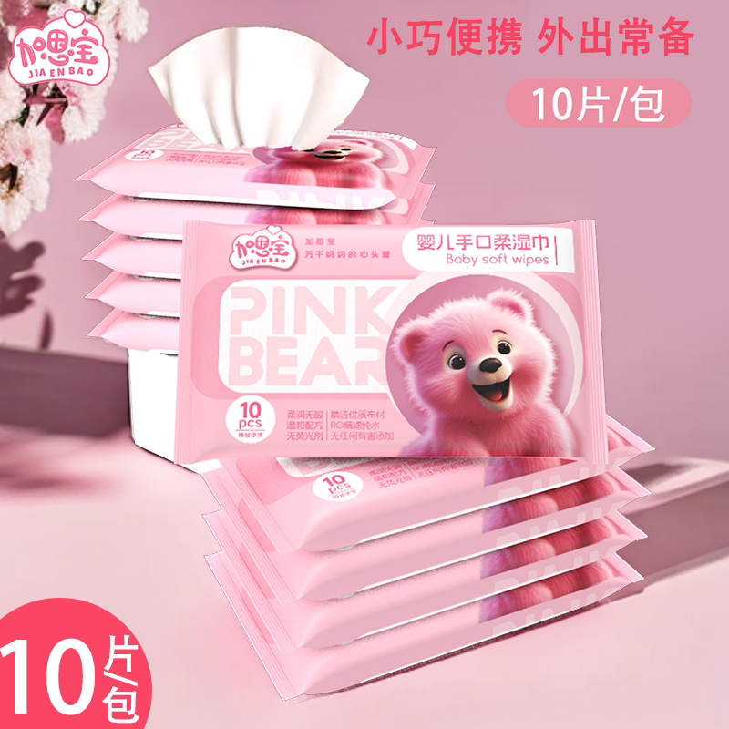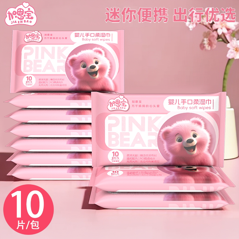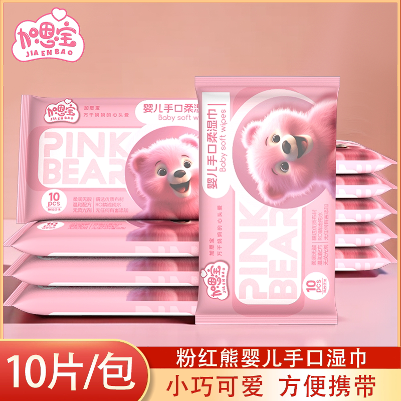加恩宝粉红熊婴儿湿巾10抽便携装婴儿手口湿便携小包迷你随身装