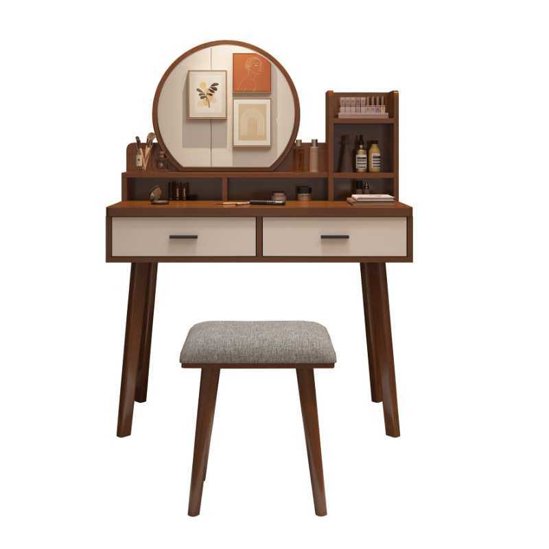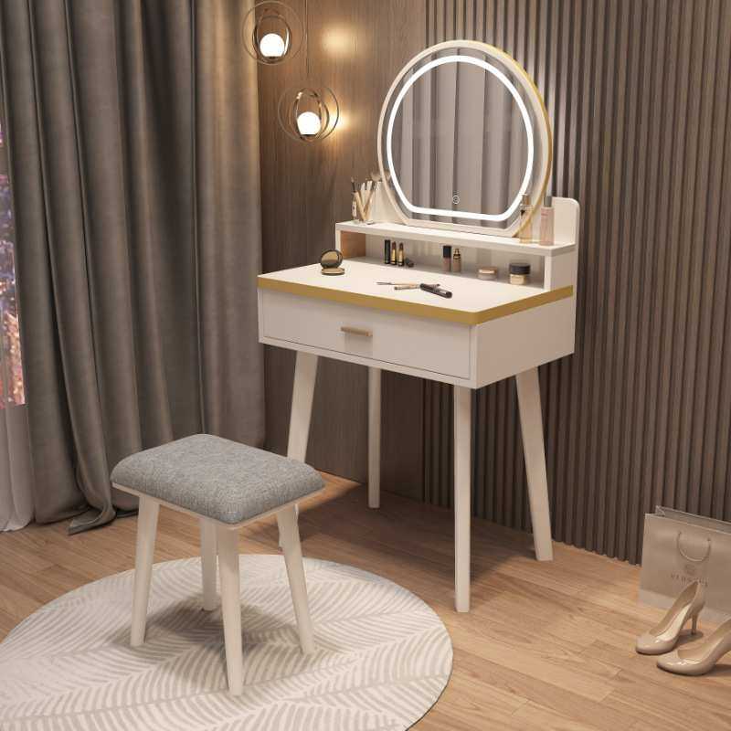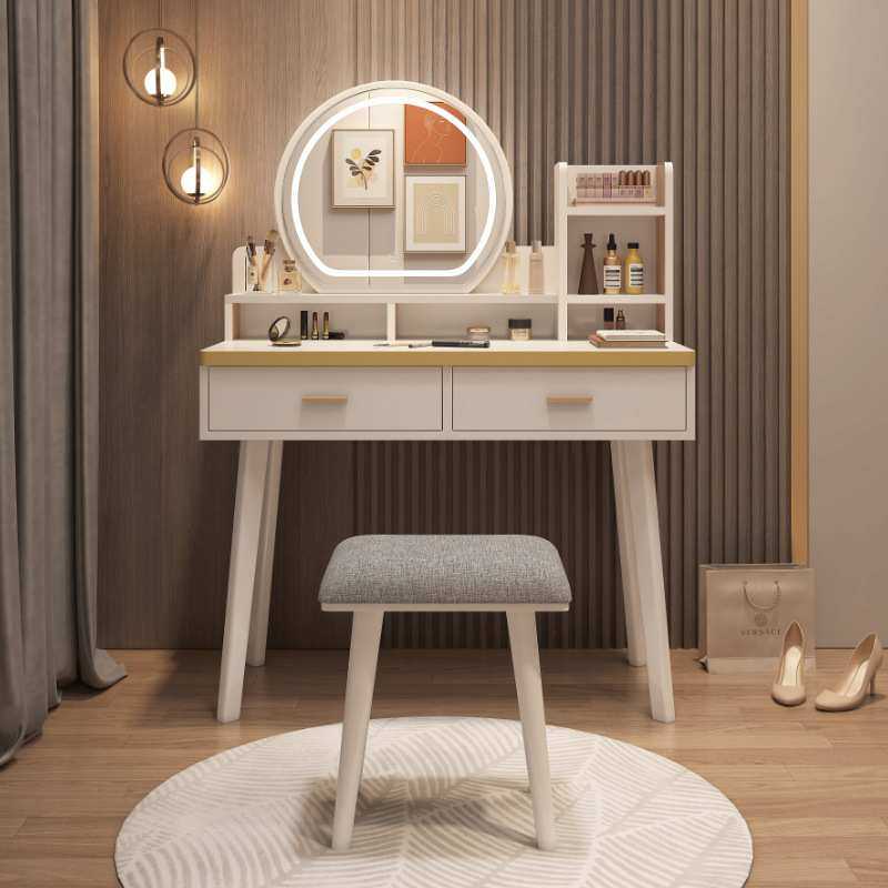 实木梳妆台卧室北欧小型化妆台收纳柜一体简约化妆桌带灯化妆镜