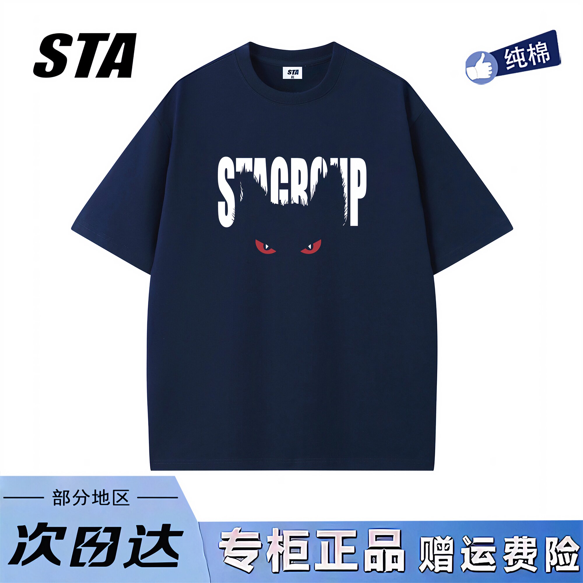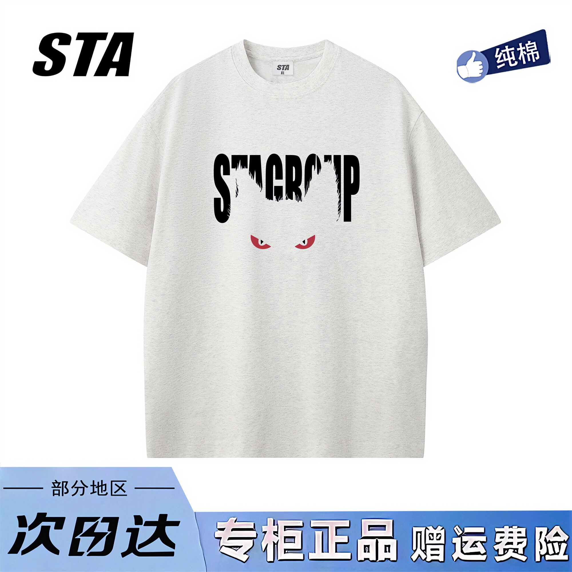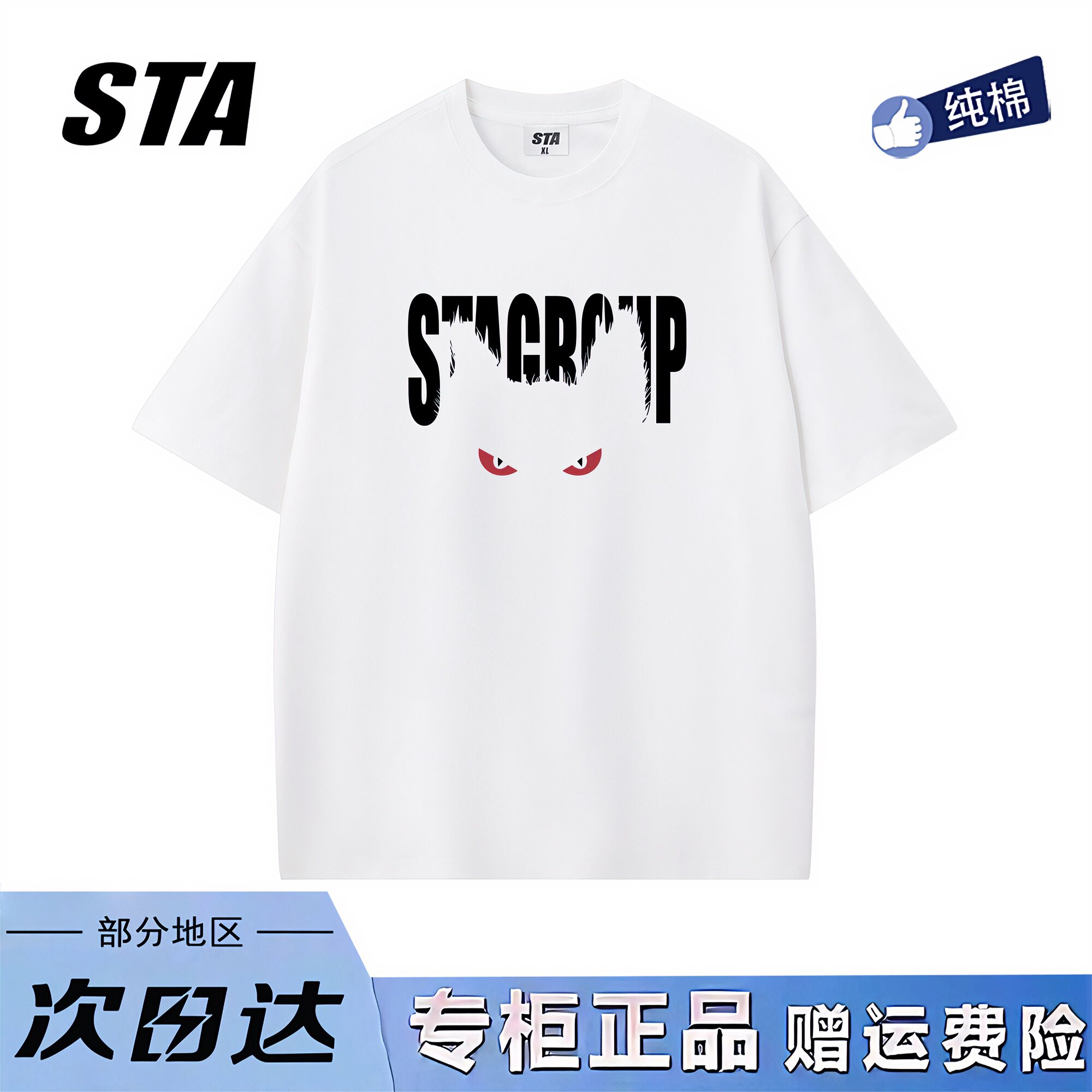 STA旗舰店美式恶魔眼印花圆领短袖男女潮牌复古高街黑色t恤上衣