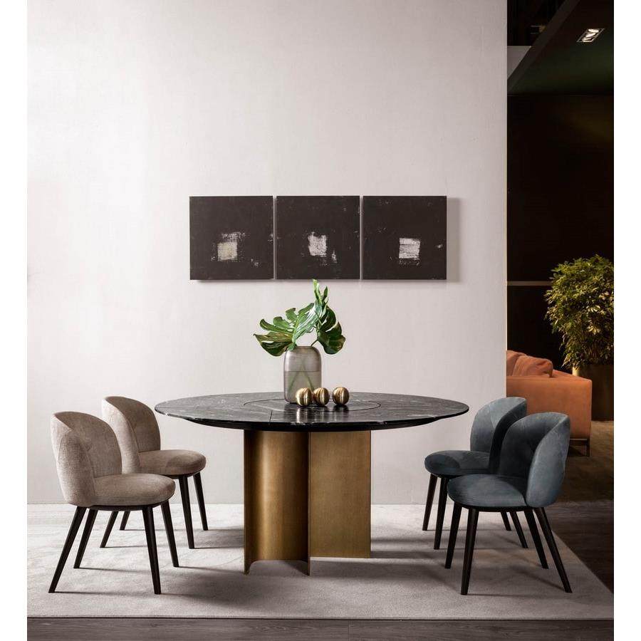 意式极简大理石金属圆桌设计师酒店餐厅实木餐桌现代家用岩板桌子