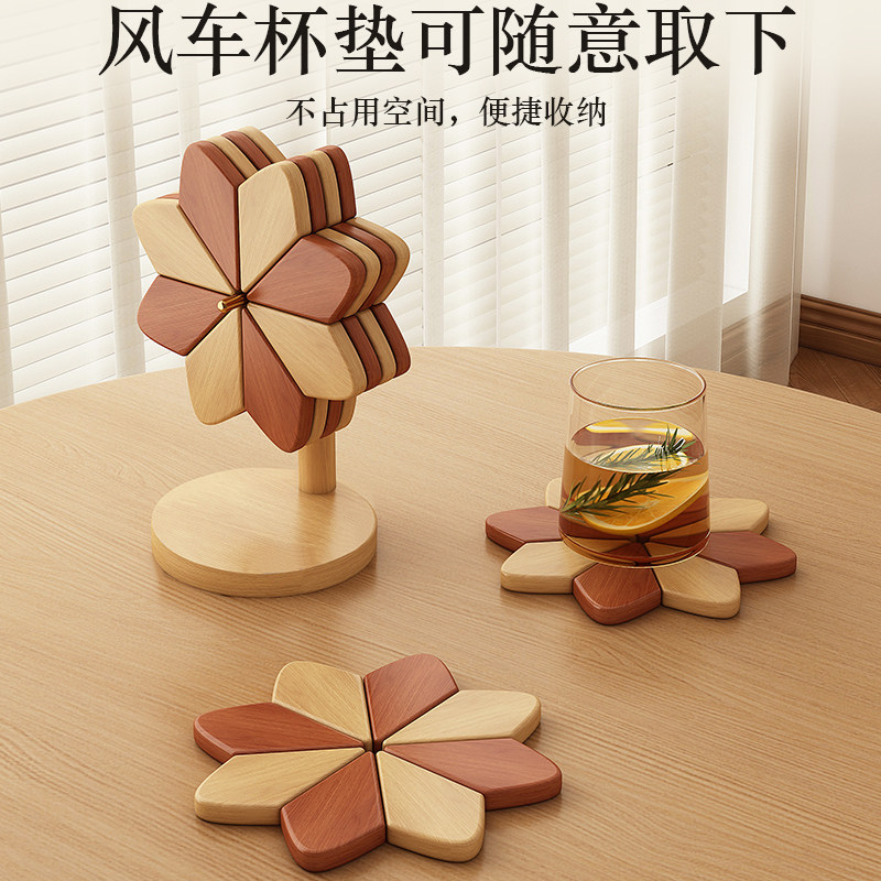 风车隔热垫竹木质餐桌防烫耐高温菜盘子碗垫创意摆件折叠锅垫杯垫