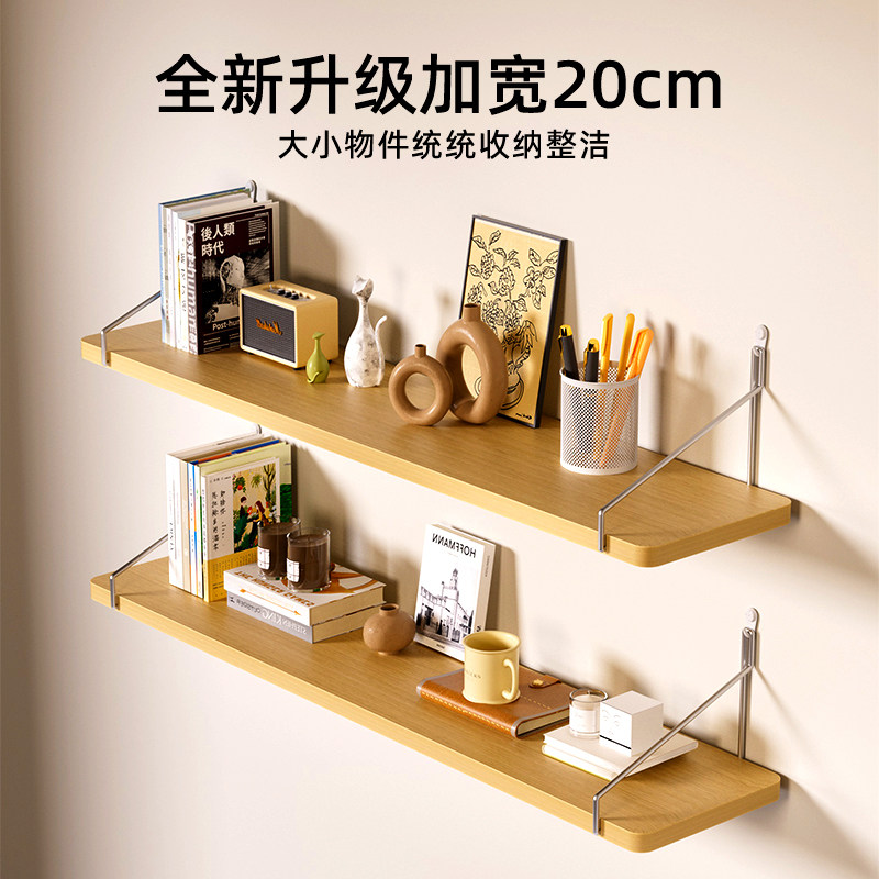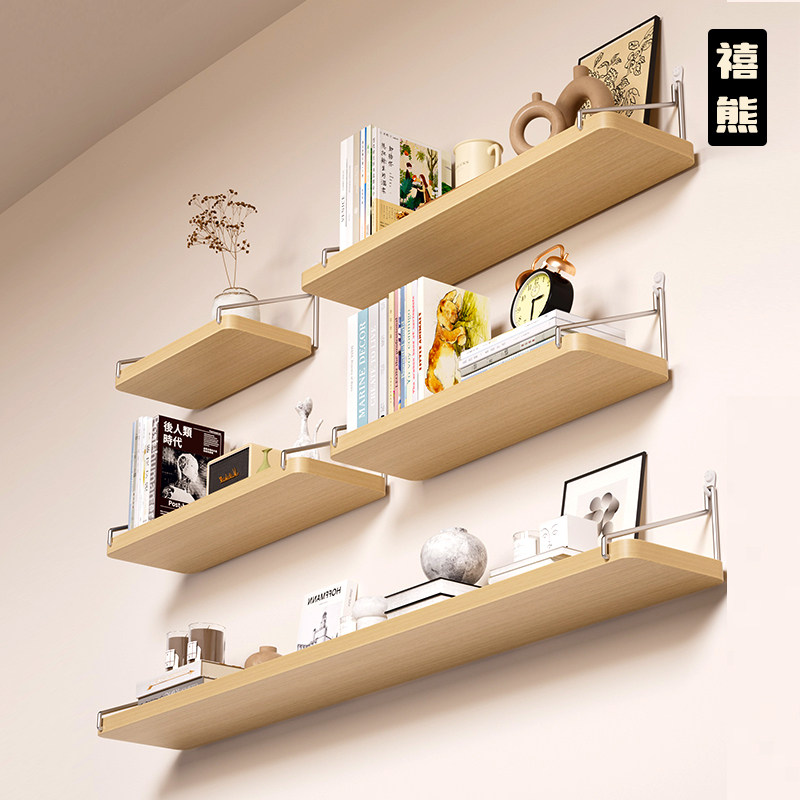 墙上置物架一字板床头置物板墙壁架子木板隔板壁挂式书架厨房承重