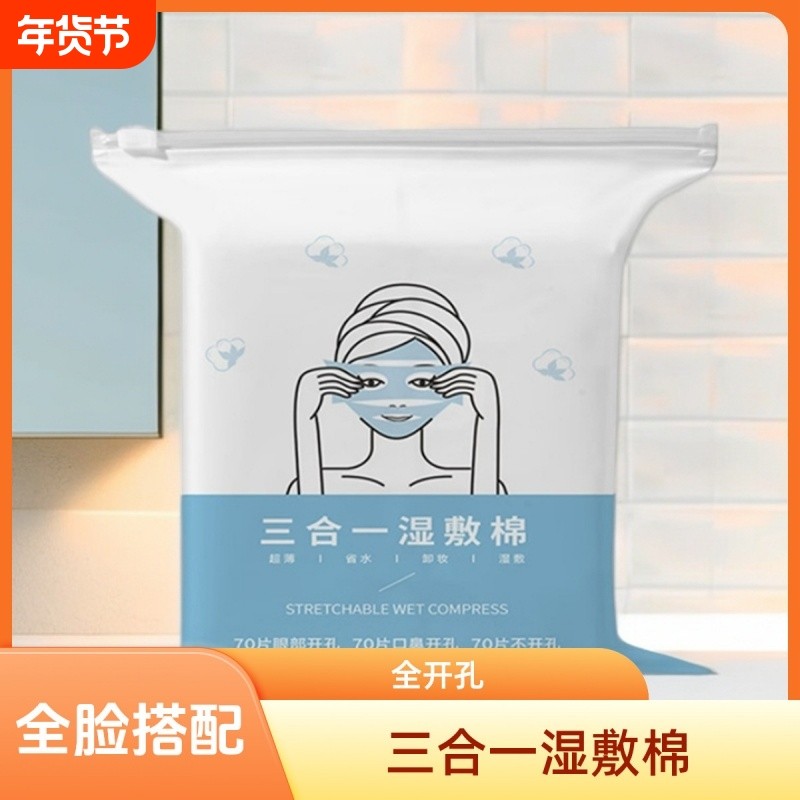 新款可拉伸湿敷棉鼻子开孔款化妆棉片敷脸专用卸妆巾薄片面膜纸