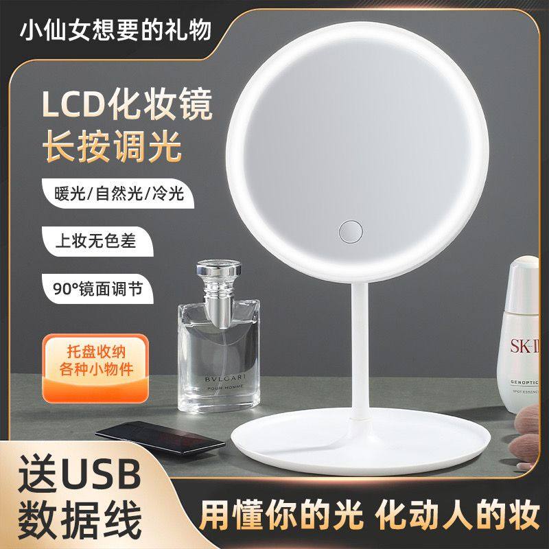 led化妆镜带灯台式网红女补光小镜子ins风宿舍桌面便携小型梳妆镜