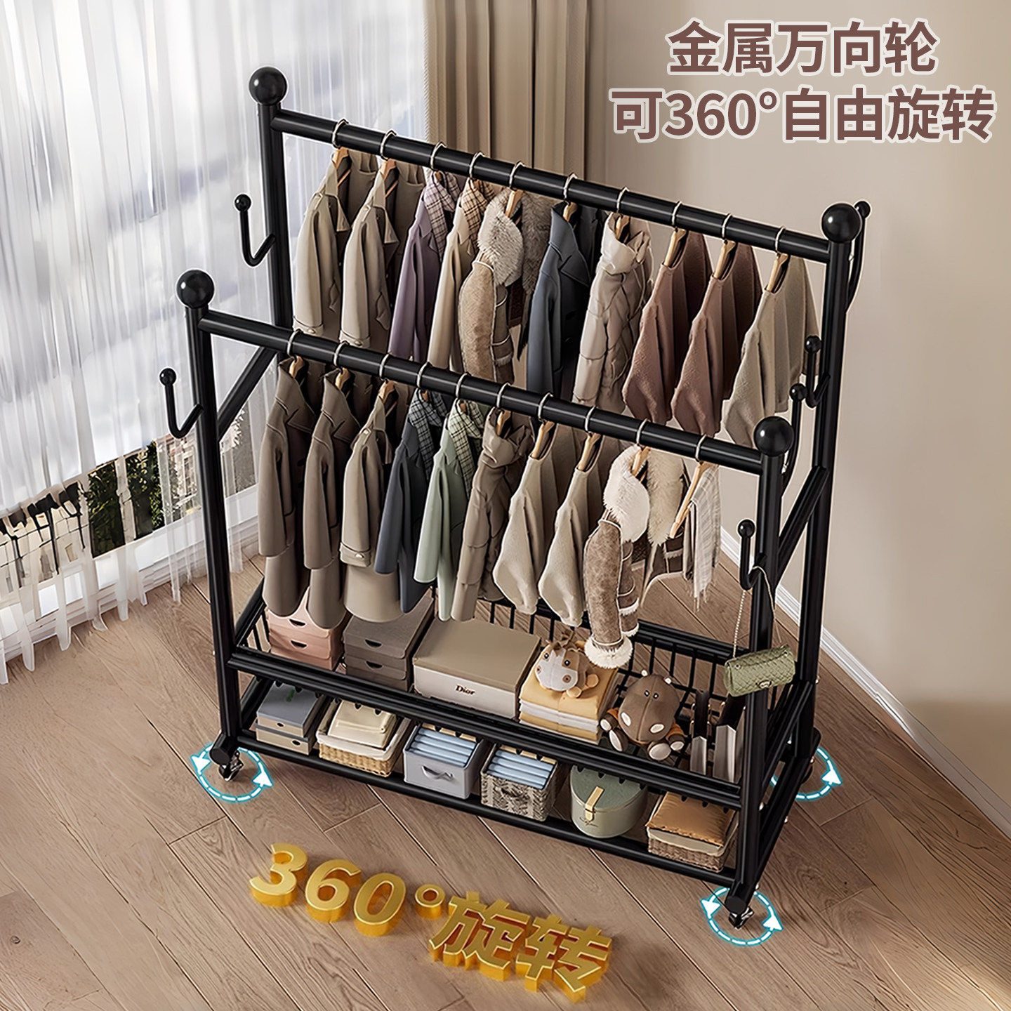 衣帽架落地卧室家用房间挂衣架置物晾衣架简易移动收纳挂衣服架子