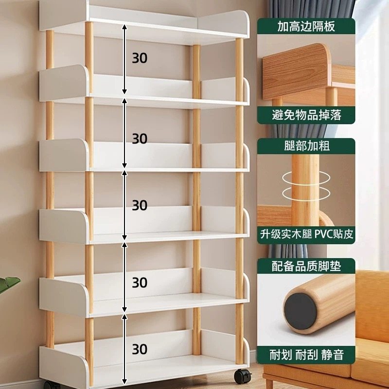 简易书架落地靠墙客厅置物架分层收纳架储物柜子一体简约家用书柜